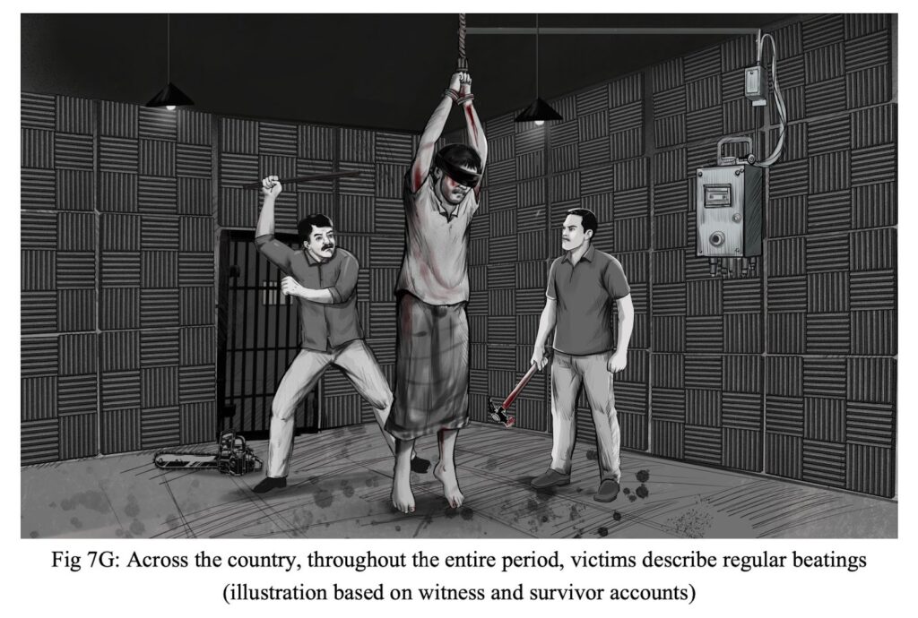 দেশজুড়ে ভুক্তভোগীরা নিয়মিত নির্যাতনের ঘটনা বর্ণনা করেন গুম বিষয়ক তদন্ত কমিশনের কাছে (চিত্রটি প্রত্যক্ষদর্শী ও ভুক্তভোগীদের বর্ণনার উপর ভিত্তি করে আঁকা)